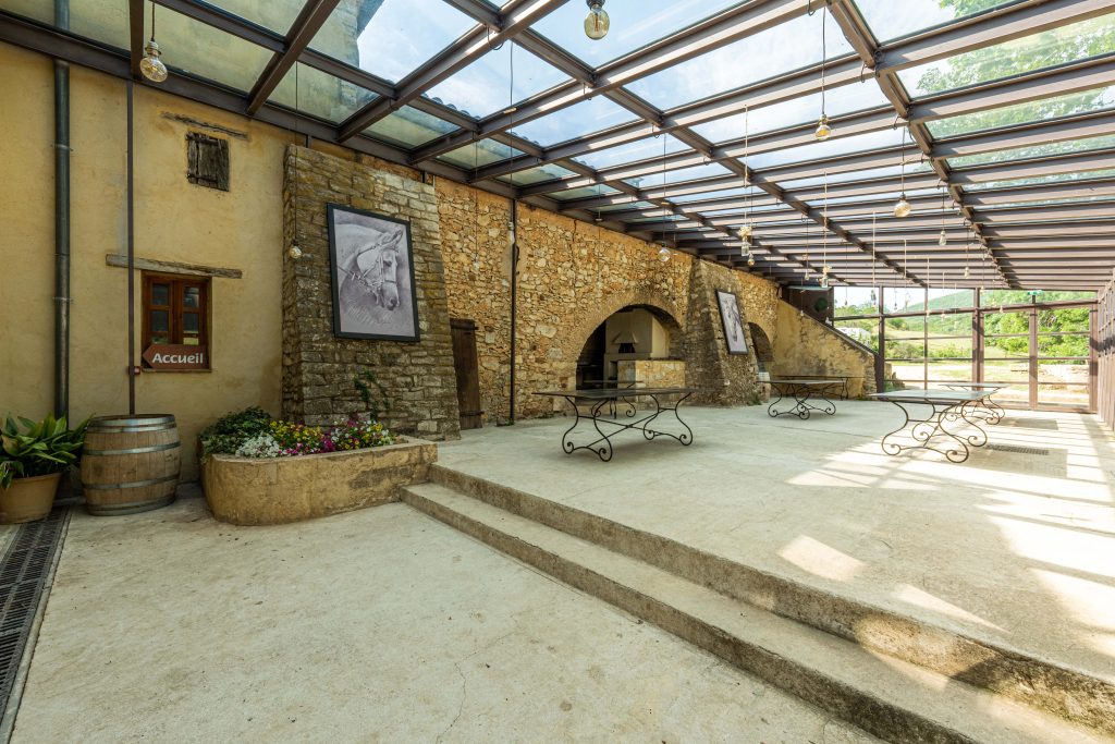 Que ce soit pour un repas assis, un vin d’honneur ou une soirée festive, la verrière séduit par sa polyvalence et son atmosphère conviviale. Vos invités profiteront d’un espace accueillant, à la fois abrité et ouvert sur les senteurs de Provence.